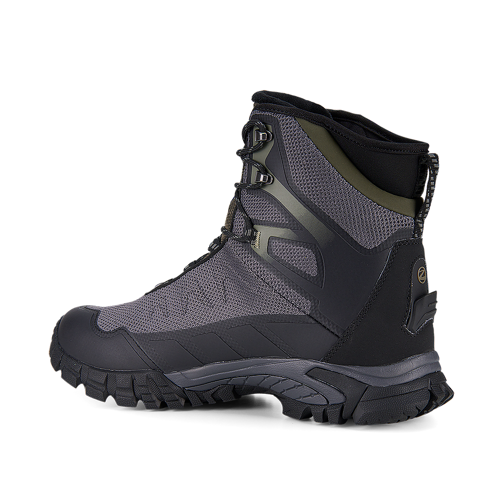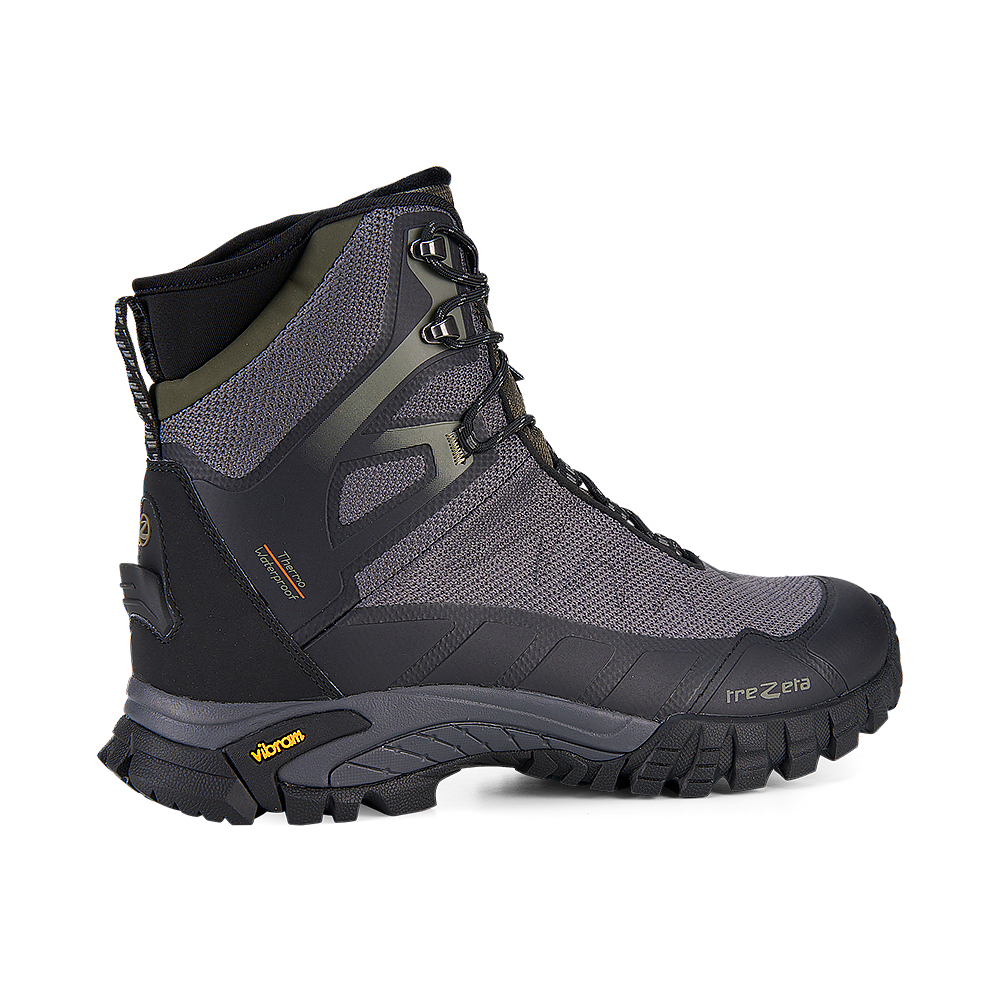 Ботинки полностью водонепроницаемы: верх из полиуретан-покрытого текстиля плотно облегает стопу и обработан трёхслойной мембраной Trezeta® Water Stopper, надёжно защищающей от снега, дождя и влаги. Внутренний сетчатый слой обеспечивает отличную воздухопроницаемость, предотвращая образование конденсата.