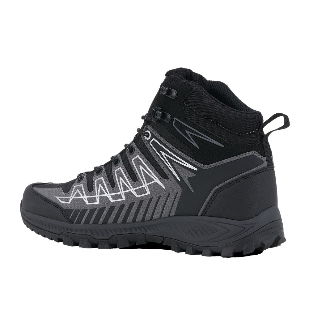 Средняя высота ботинка и мягкий анатомический язычок обеспечивают плотную, но комфортную посадку и надёжную поддержку голеностопа — особенно важную на неровной местности. Система шнуровки сочетает прочные люверсы и металлические крючки, что гарантирует надёжную фиксацию и долговечность. Мысок и пятка дополнительно защищены износостойкой полиуретановой мембраной, которая поглощает удары и предотвращает истирание даже при интенсивной эксплуатации.
