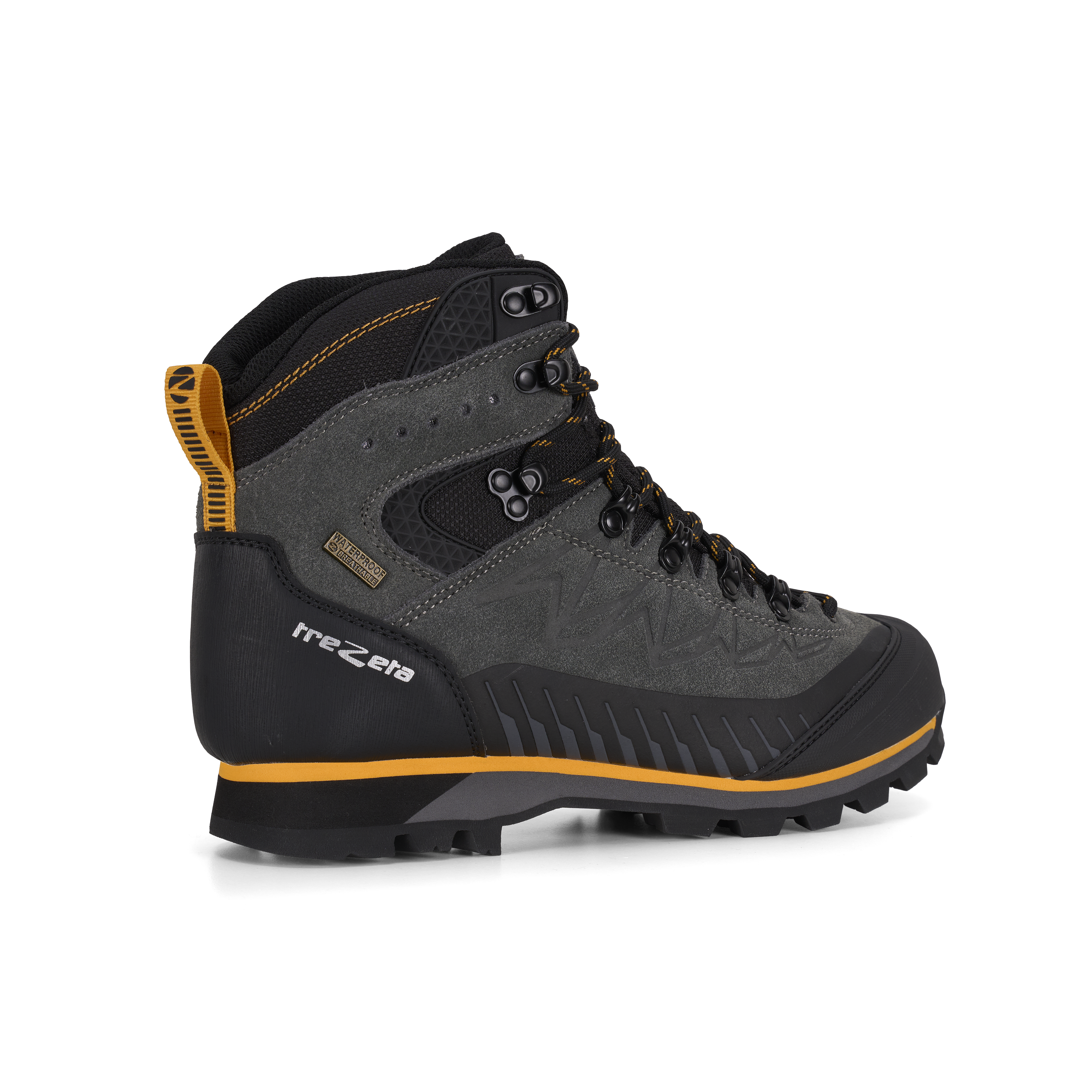 Верх выполнен из износостойкой водонепроницаемой замши с усиленными мыском и пяткой, а также резиновым рантом, нанесённым по периметру — это повышает прочность без ущерба для веса. Мембрана Trezeta® Water Stopper в сочетании с пятью вентиляционными отверстиями обеспечивает надёжную защиту от дождя и снега, одновременно регулируя микроклимат внутри обуви.