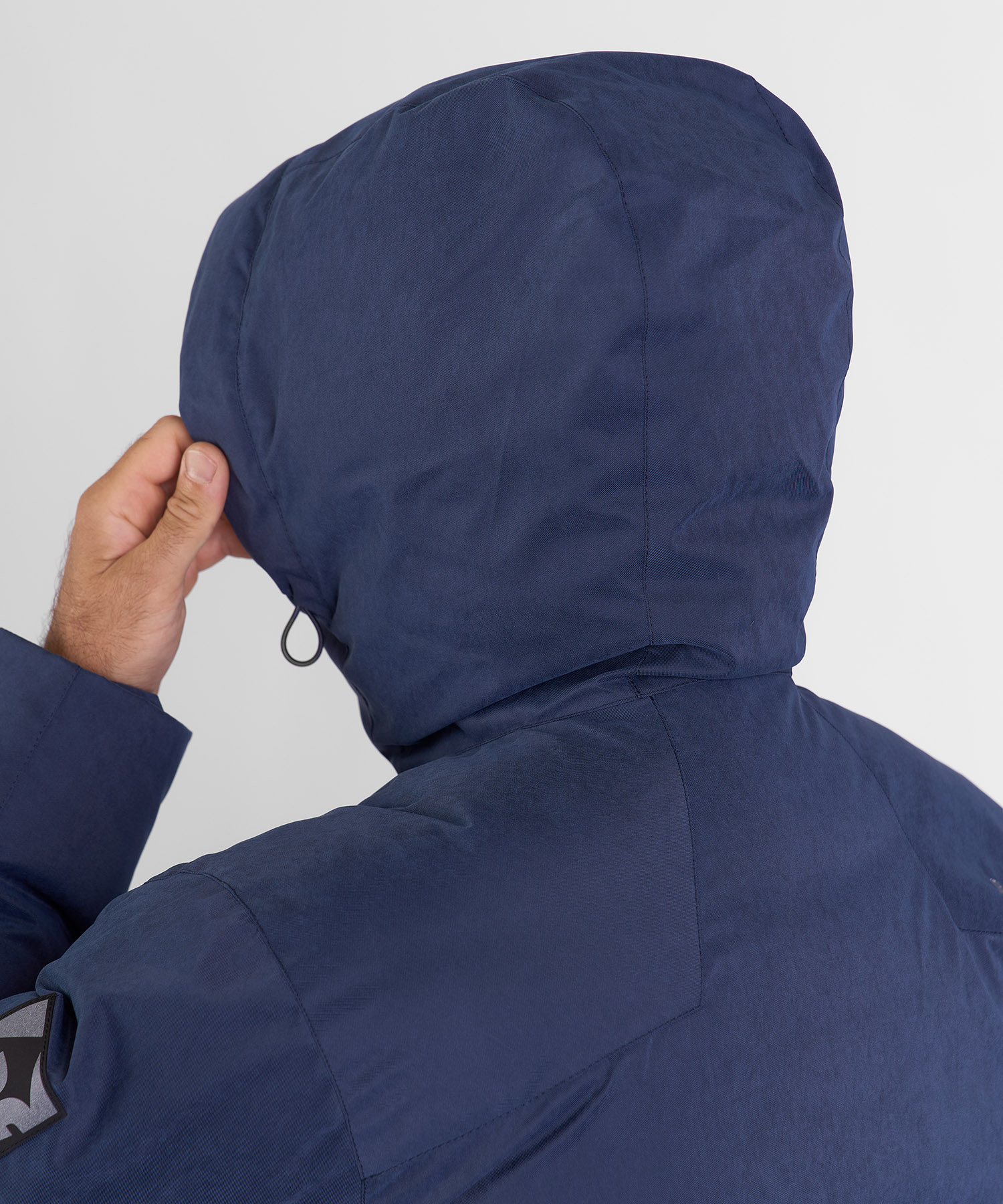 - Регулируемый по объёму капюшон — плотное прилегание без ограничения обзора