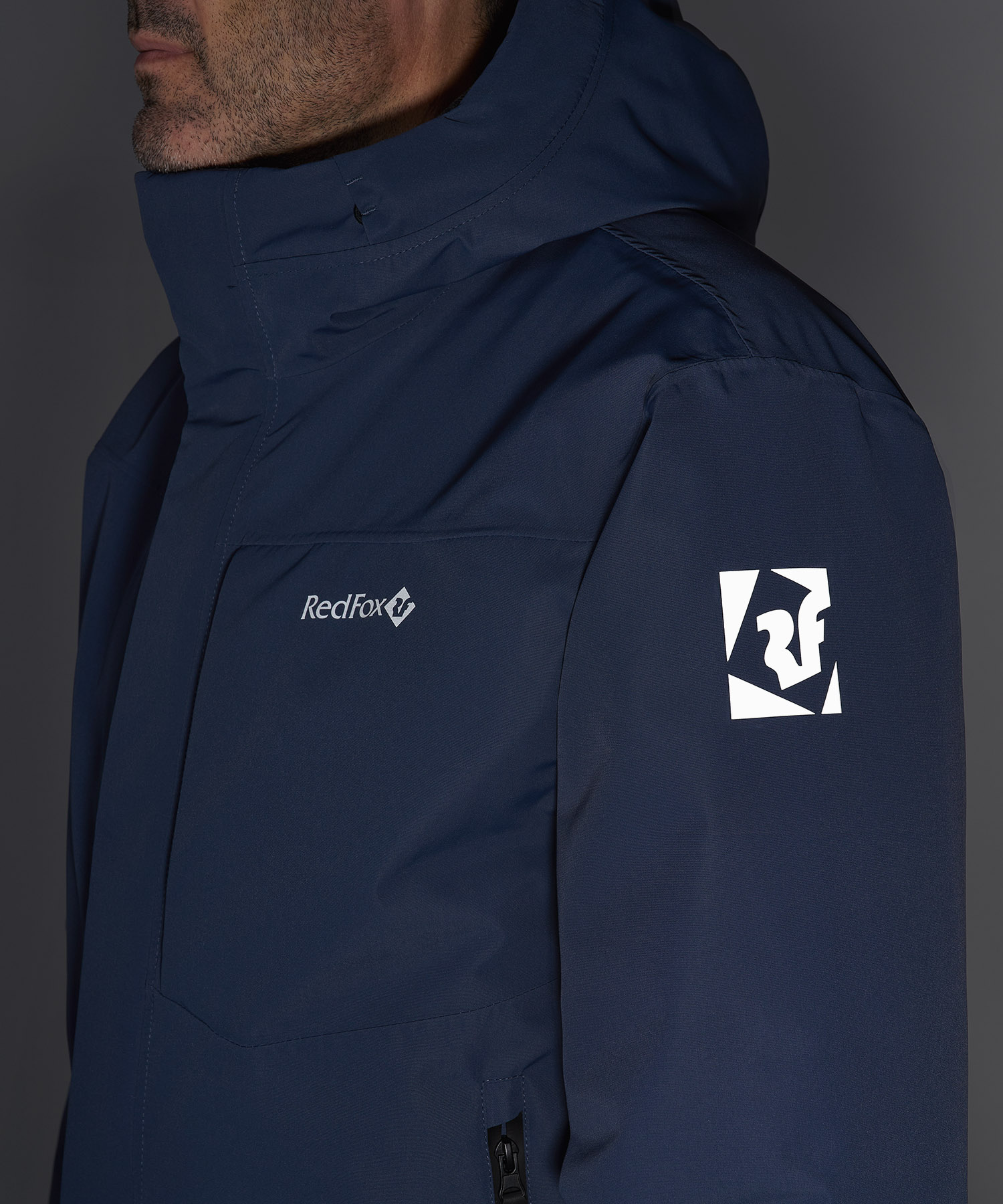 - Внешний слой: Dry Factor® Advance — мембранная ткань с водонепроницаемостью 5000 мм и паропроницаемостью 5000 г/м²/24ч. Обработана пропиткой DWR для отталкивания влаги.