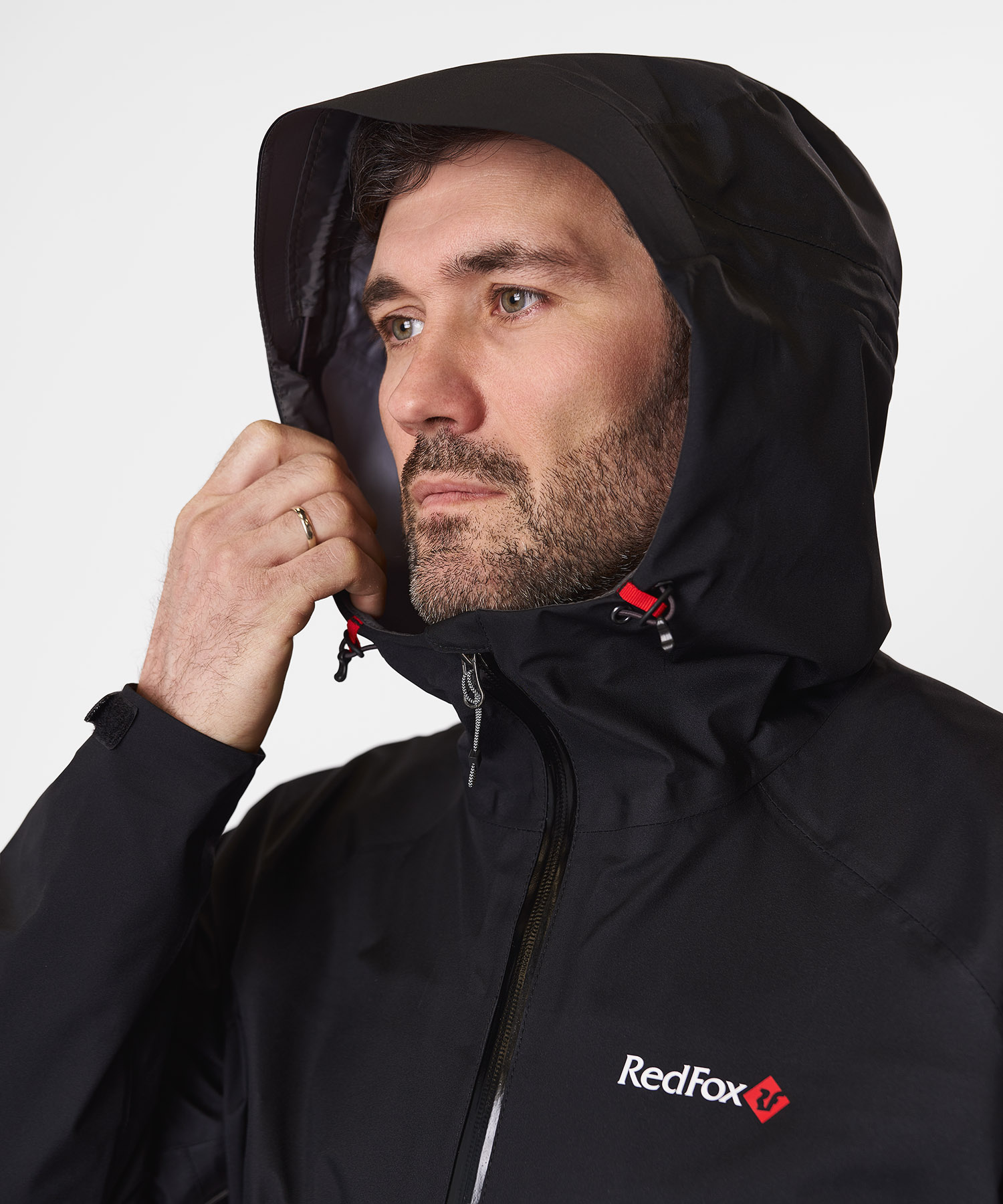 - Регулируемый в двух плоскостях капюшон с козырьком — плотно сидит на голове и не мешает обзору, совместим с каской