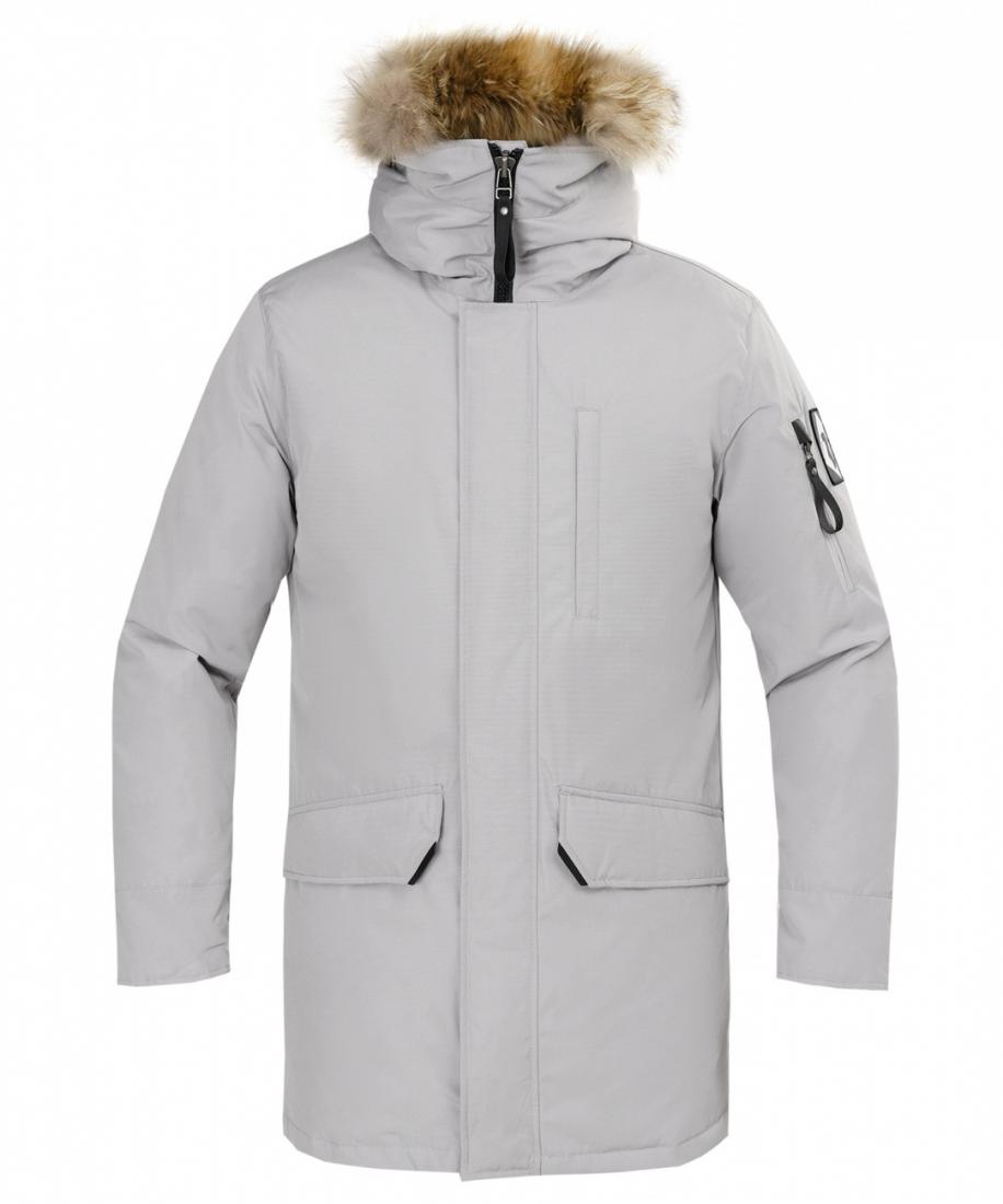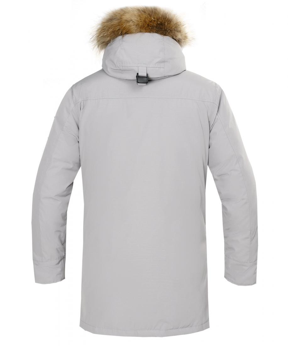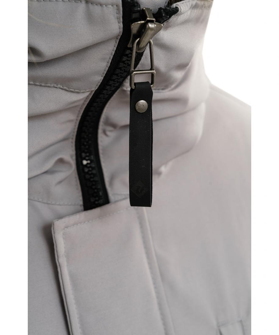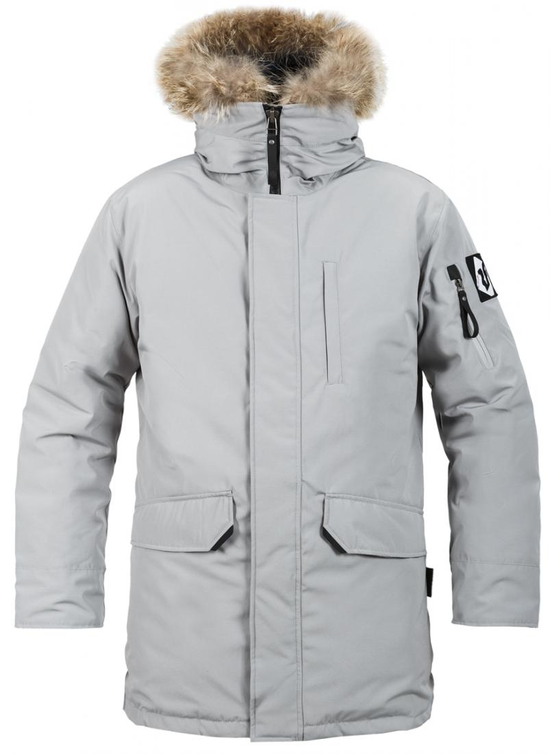 - капюшон с регулировкой по высоте и с опушкой из меха енота, застегивающийся в «трубу» и изолирующий лицо от ветра