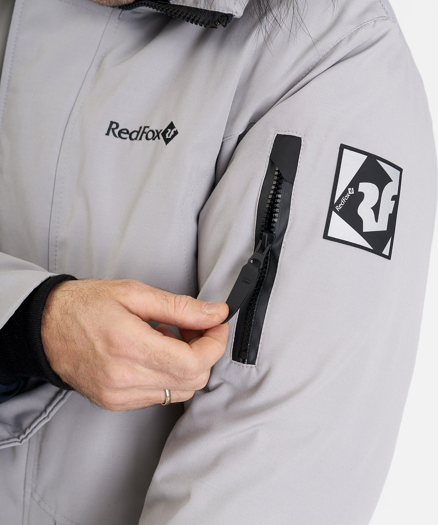 - Карман на рукаве с влагозащитной молнией — быстрый доступ к мелочам без расстёгивания основной застёжки