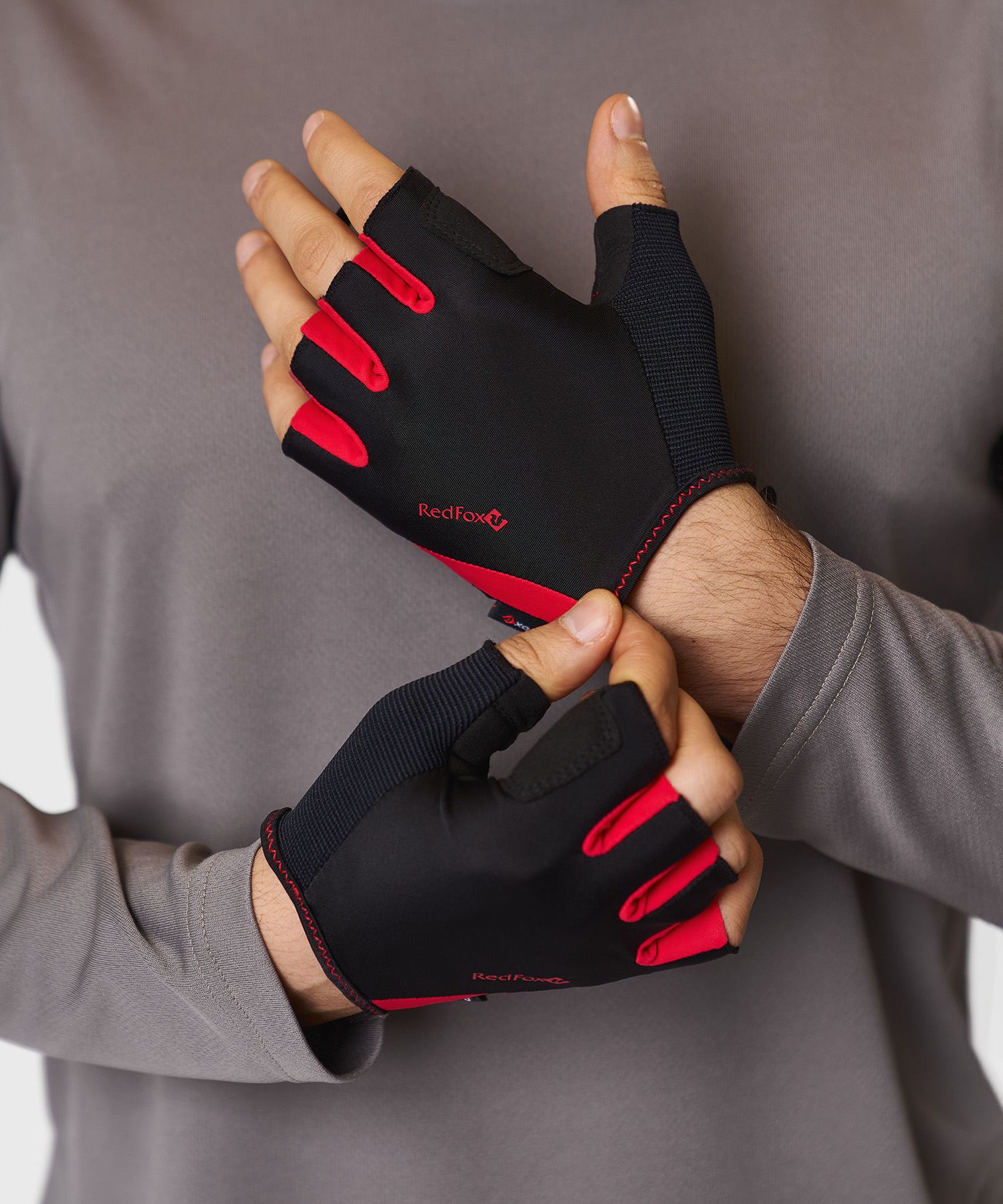 • Впитывающая ткань на тыльной стороне большого пальца — позволяет легко вытирать пот или влагу без необходимости останавливаться