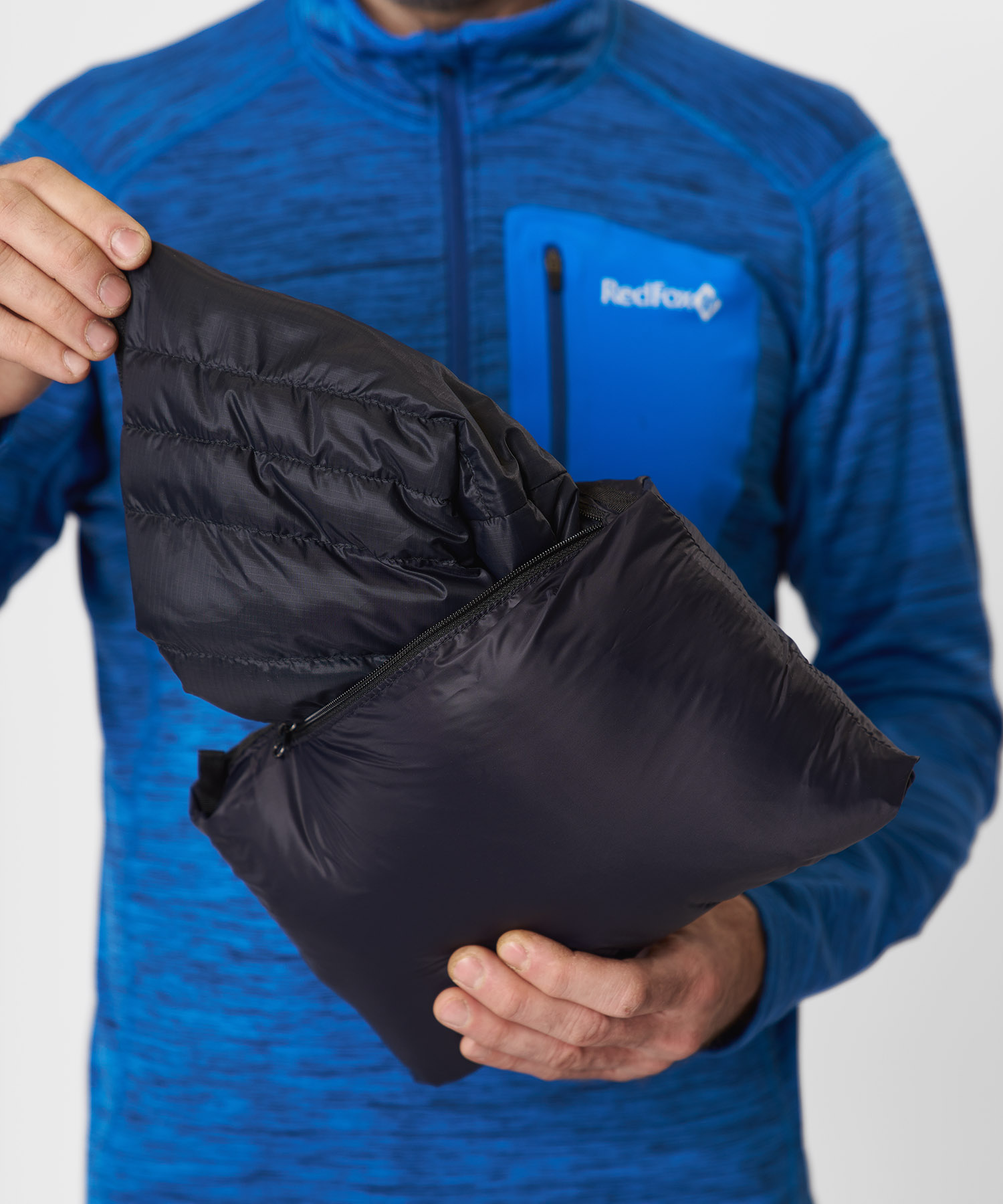 • Упаковка в левый боковой карман — жилет превращается в компактный пакет, легко помещается в рюкзак