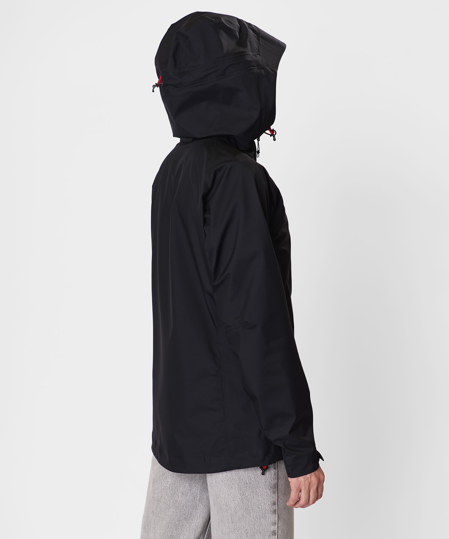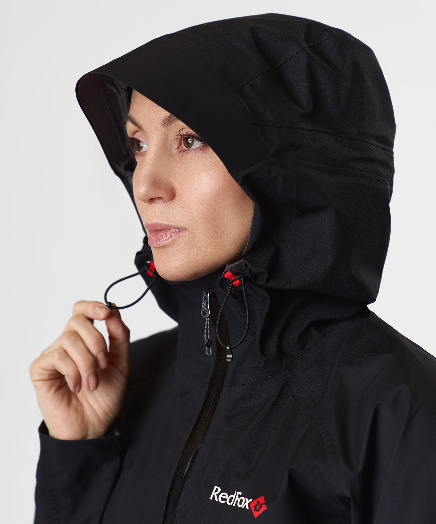 - Регулируемый в двух плоскостях капюшон с козырьком — плотная посадка, полный обзор, совместимость с каской