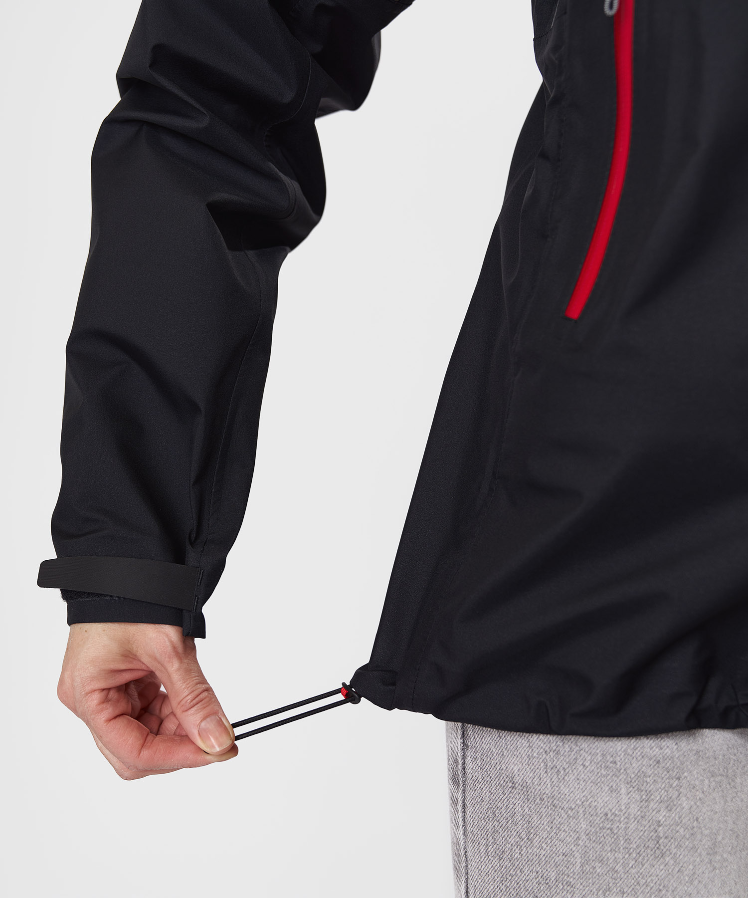 - Регулировка по низу куртки — фиксация в сильный ветер