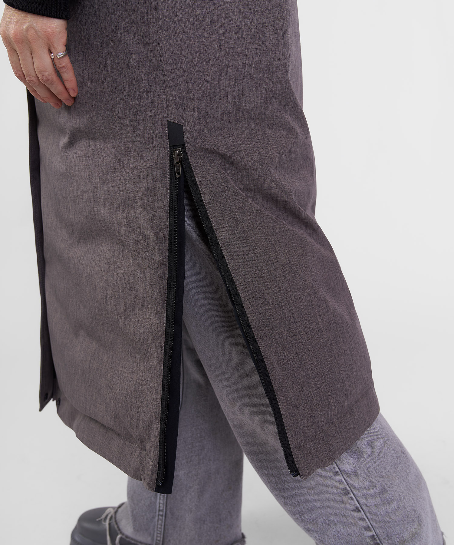 - Боковые разрезы на влагозащитных молниях с подпланками — удобный доступ к карманам или рюкзаку без снятия пальто