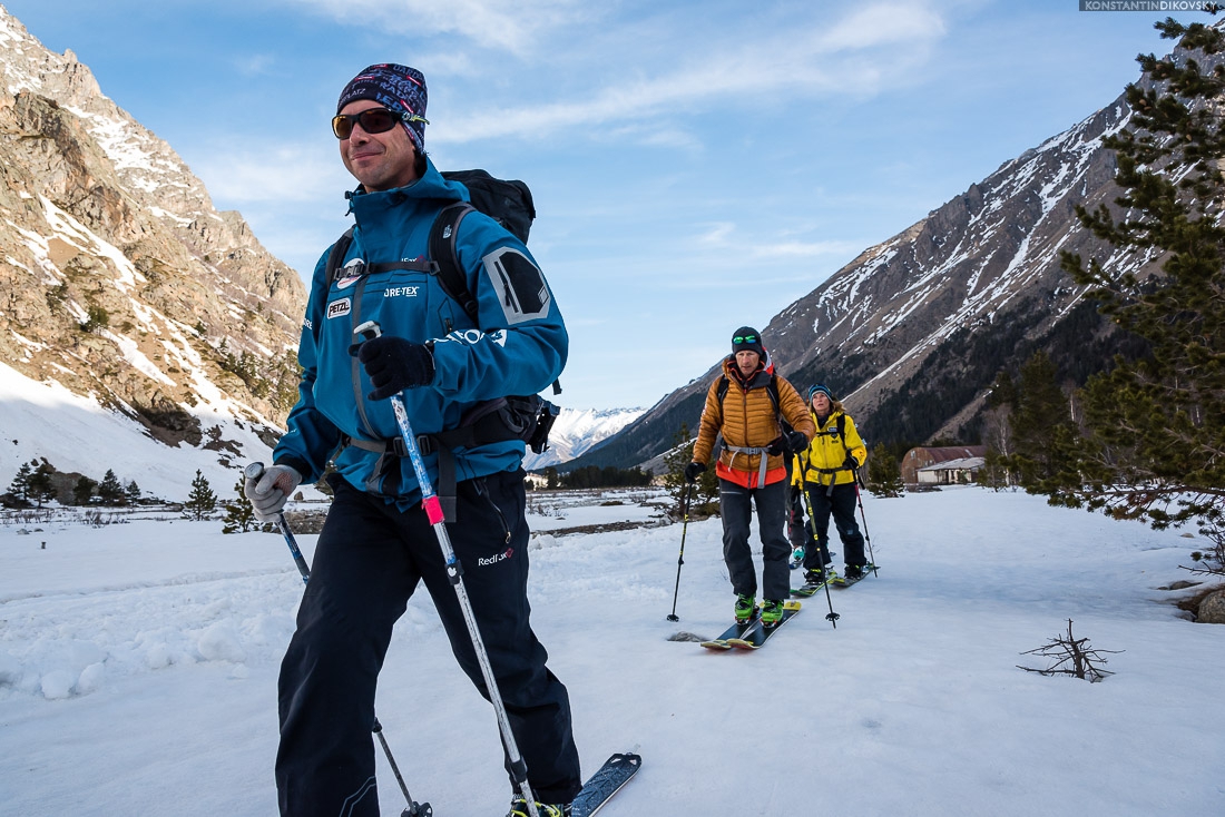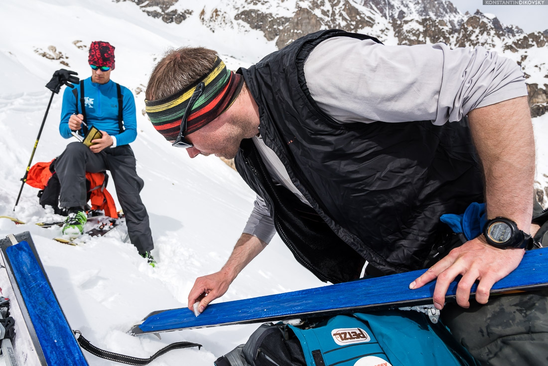 Макс: Важно при работе с клиентом давать ему то, что он хочет. И делать это красиво и безопасно, в первую очередь, чтобы клиенту было комфортно. Нужно понимать, что между гидом и проводником есть разница. Проводник может встать на лыжи и уехать, показав след. Но ведомый не факт, что знает, какие опасности его ждут на видимом участке и за перегибом. Зачастую не может сам снять камуса. Ему нужно помочь, объяснить, показать. Подсказать, когда лучше надеть куртку или, наоборот, снять. Многие люди берут гида, чтобы им было проще приспособиться к горным условиям, в которых они не знают как себя вести.
