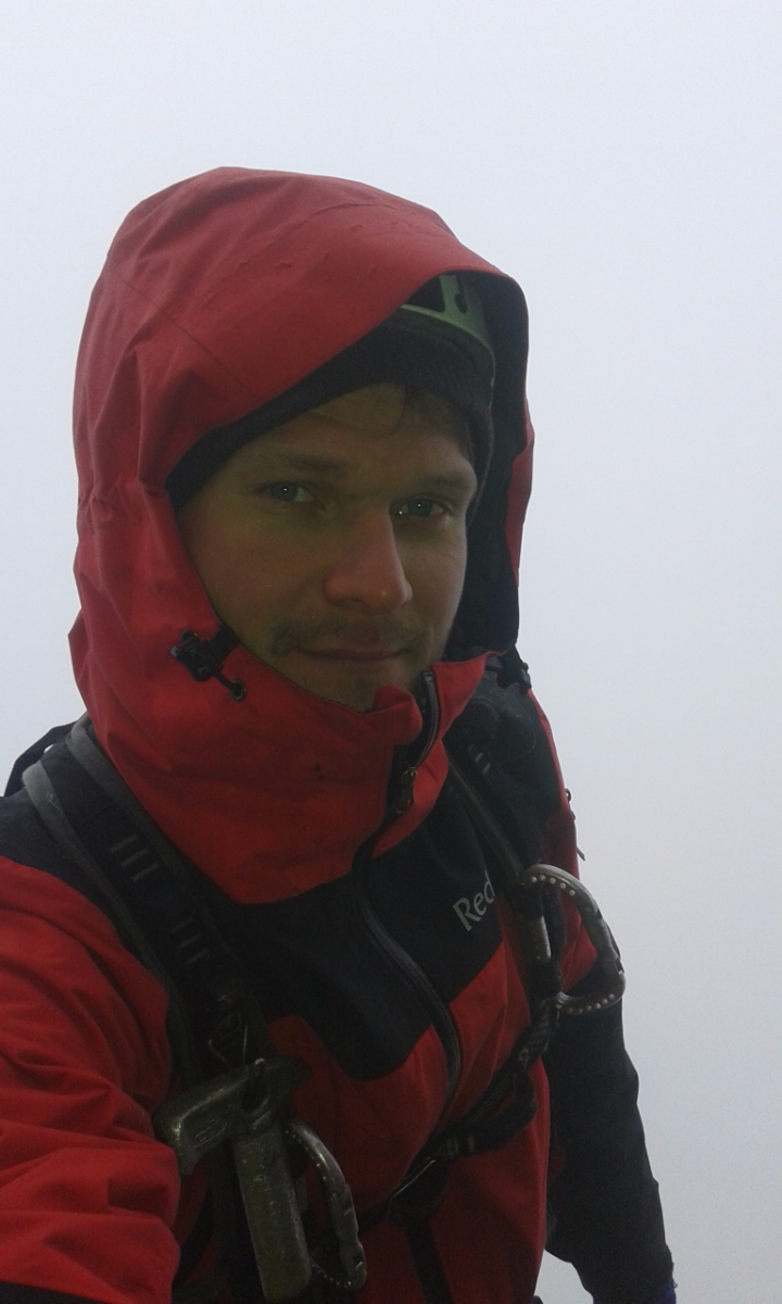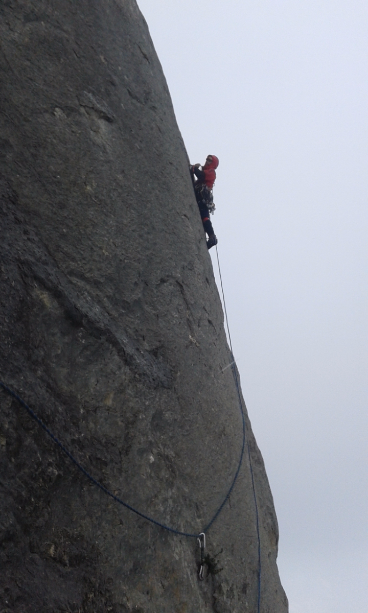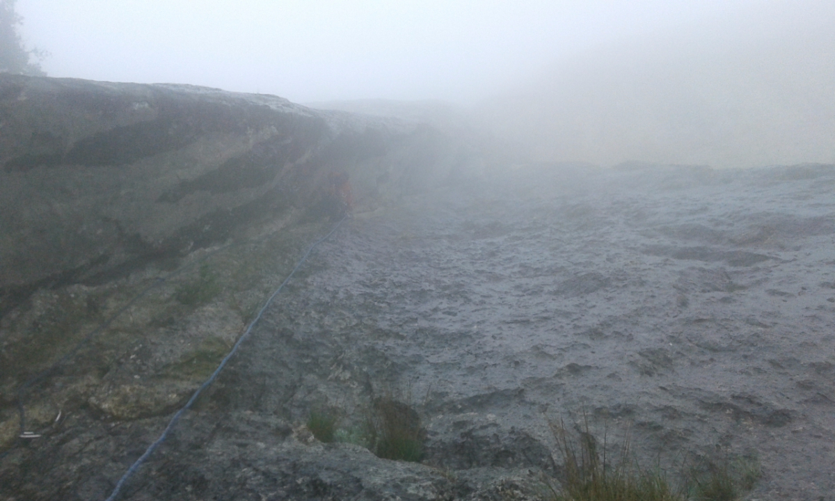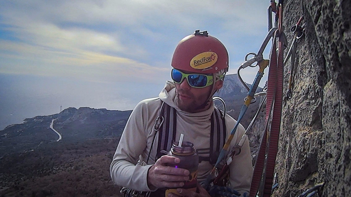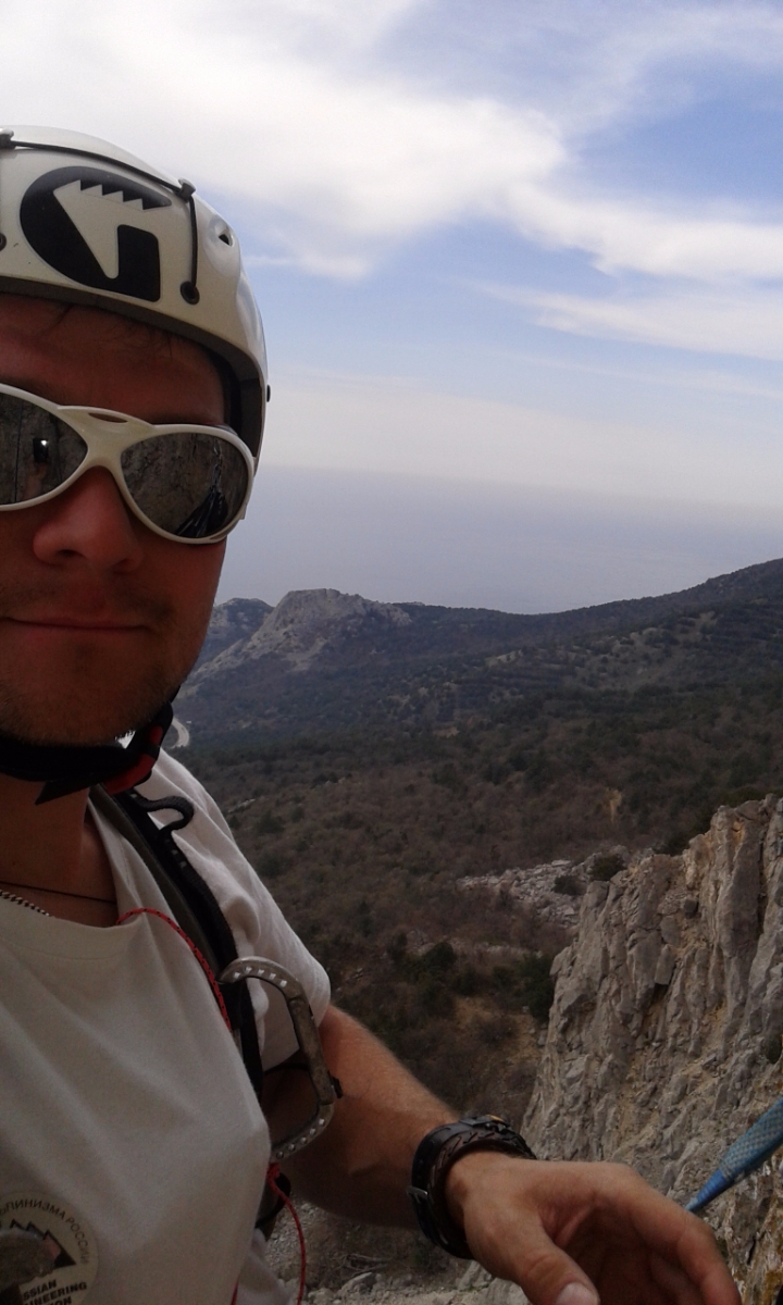 Второй день 12-ти часовой марафон на Куш-Кае. Погодка была не самая Крымская. На первом же маршруте через час после выхода начался дождь, температура упала. По стене побежали речки. Но мы с Игоряном не унывали - это ж альпинизм! Достали из рюкзака офигенные мембранки Red Fox X5 GTX, одели и бомбили в них до конца дня. Остались сухие, и сильно не потели.