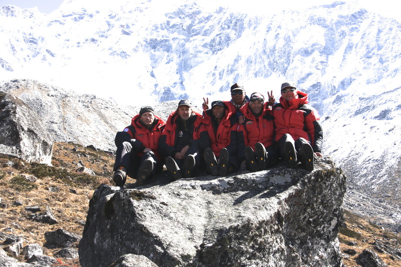 Эта гора, горячо любимая альпинистами, особенно выделяется на фоне окружающих вершин непальского национального парка Сагарматха. Ее гребни, словно раскинувшиеся для объятий, приковывают взгляды любителей высоты. Очарованные ее спокойной привлекательностью, участники итальянско-российской экспедиции в октябре предприняли восхождение по юго-западному гребню. Данный маршрут популярен среди большинства экспедиций, но это отнюдь не означает, что он прост. Всё совсем наоборот: это один из наиболее сложных альпинистских маршрутов и требует от спортсменов длительных физических тренировок, высочайшей технической подготовки и максимальной психологической собранности. Заснеженные склоны сменяются практически вертикальными голыми скалами, по которым нужно карабкаться целый день с тяжелым рюкзаком за плечами. Порой не менее тяжелая головная боль – реакция организма на высоту – сопровождает всё восхождение. Пронизывающий ветер, холод, недостаток кислорода, суровый ультрафиолет – таковы привычные условия для спортсменов, которые обрели в горах второй дом. Сильнейший снегопад и тающие над головой ледники в любой момент могут помешать исполнению мечты – восхождению на вершину.