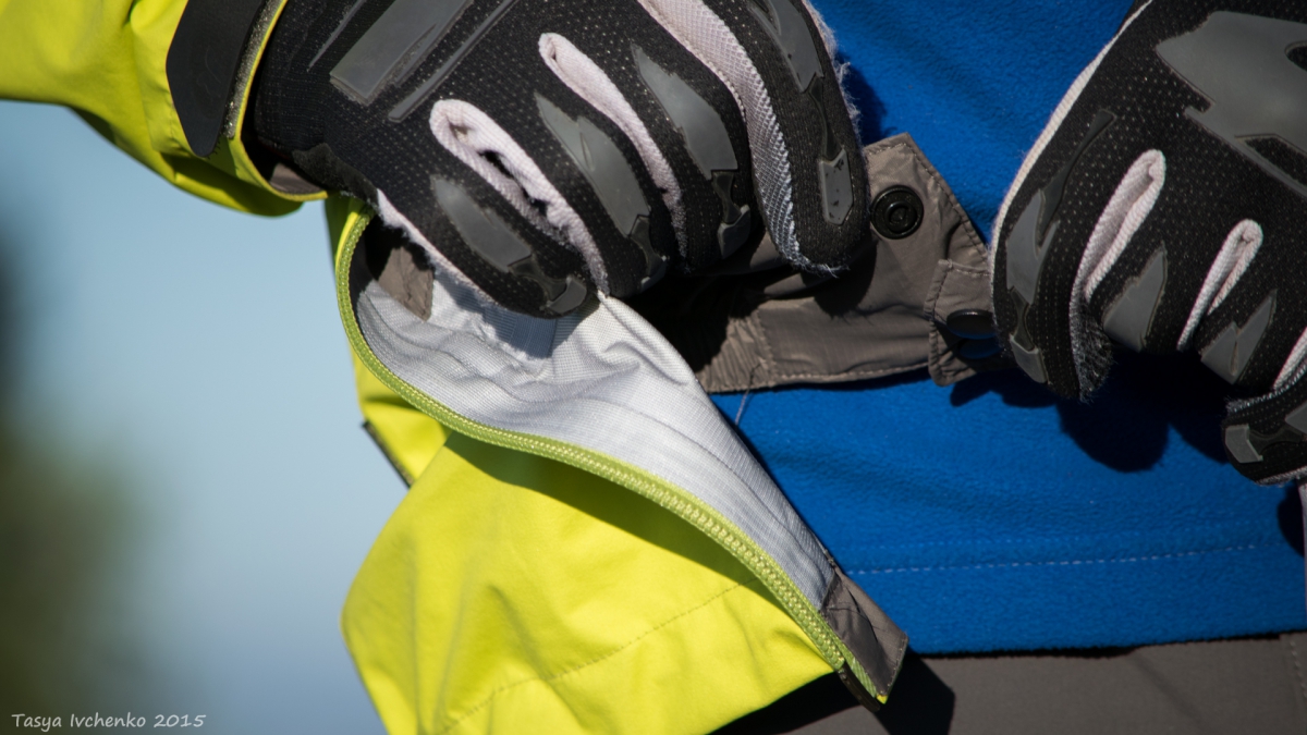 Очень понравилась фурнитура. Молнии с плавным ходом, не заедают. На них очень удобные хлястики, легко пользоваться в перчатках. Контактные зоны в районе воротника, шеи и подбородка покрыты приятным микрофлисом, есть защита от молнии.