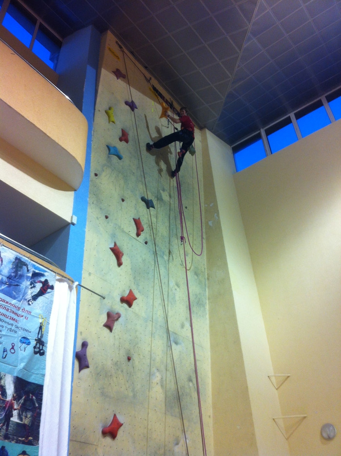 Что так оживленно обсуждают юные скалолазы, столпившись у одной из стеклянной